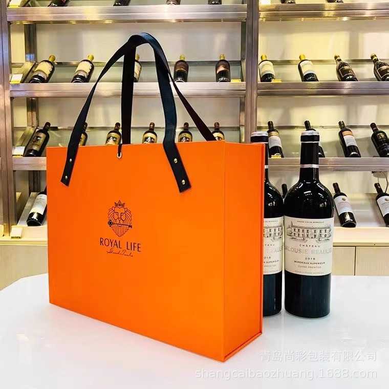 手提げワインギフトボックスオレンジ色ギフトボックス