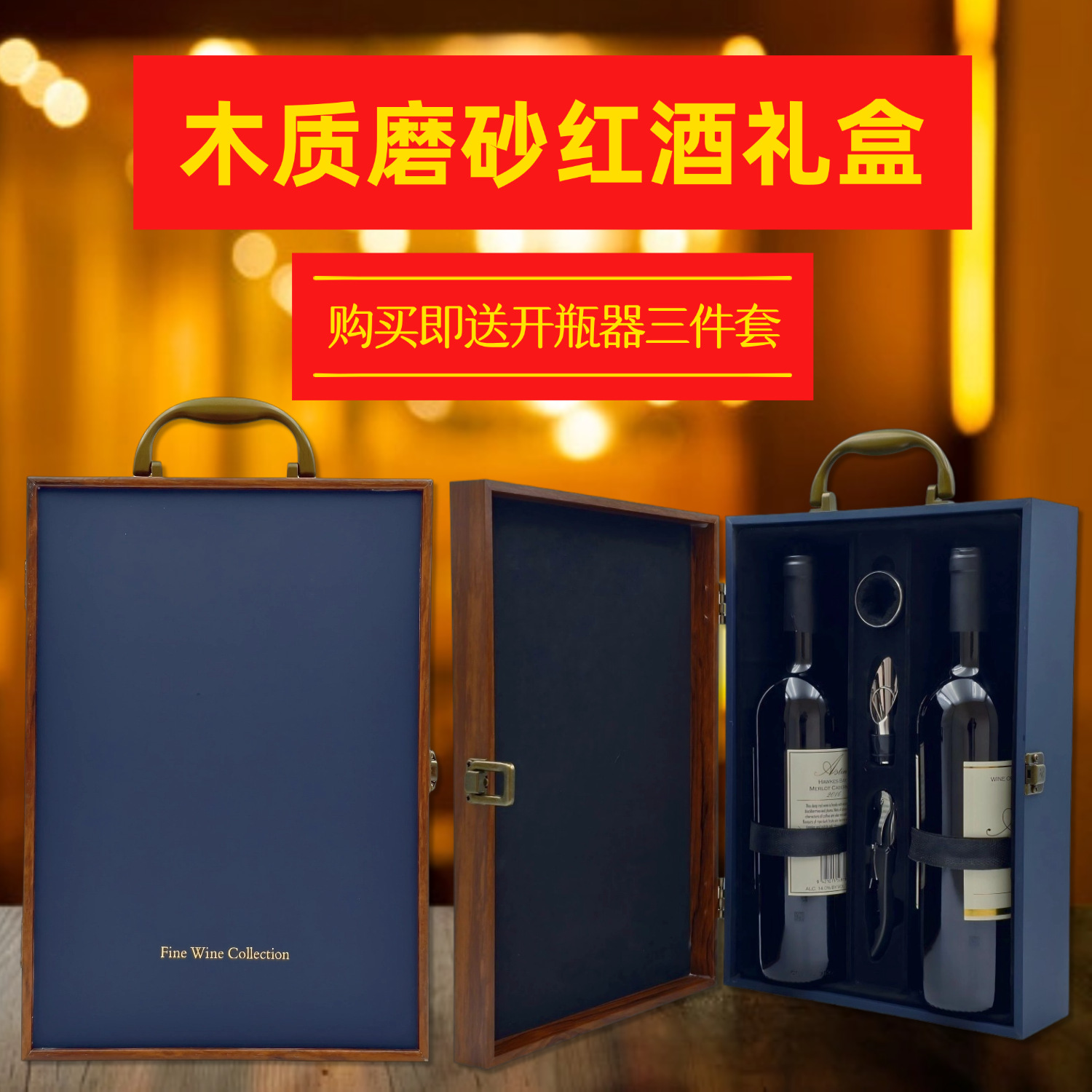 ハイエンドビジネスブルー赤ワインダブルギフトボックスポータブル木製ワインセット包装箱工場スポット卸売