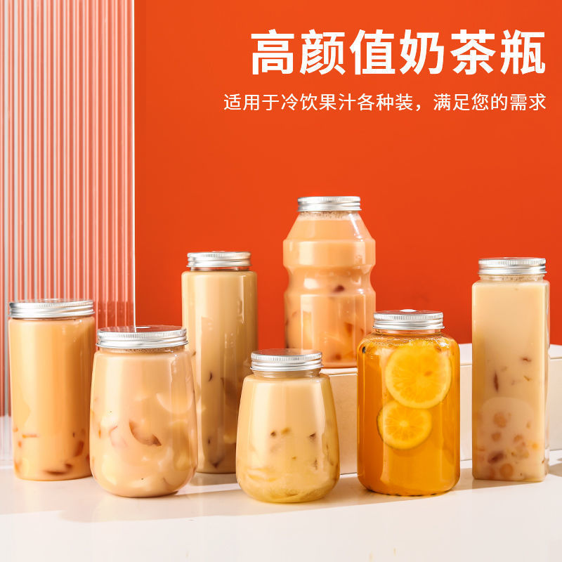 【包邮】プラスチックミルクティーパッケージ杯ネット赤ジュース飲料包装瓶アルミ蓋大口一回飲料瓶