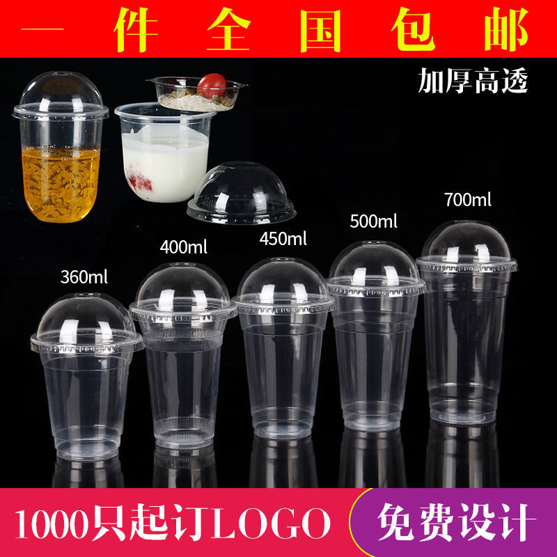 【包郵便】一度に透明なプラスチックカップ飲料ミルクティーカップジュース360/450/500/700ベルトを厚くする