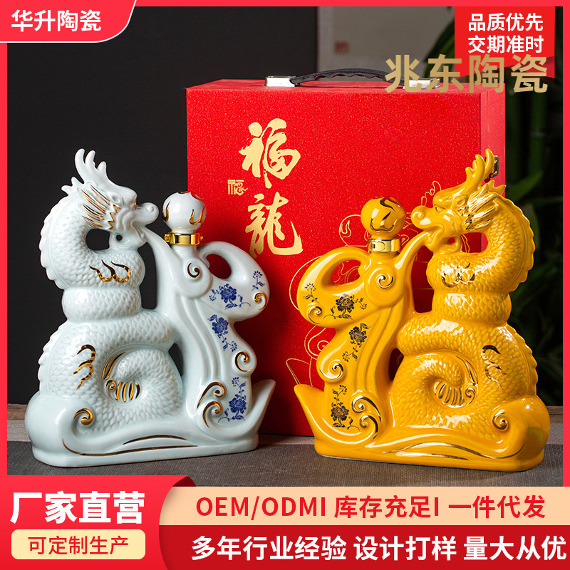 3斤福龍景徳鎮5斤陶磁器空酒瓶生肖龍創意置物工芸品酒瓶昇降箱