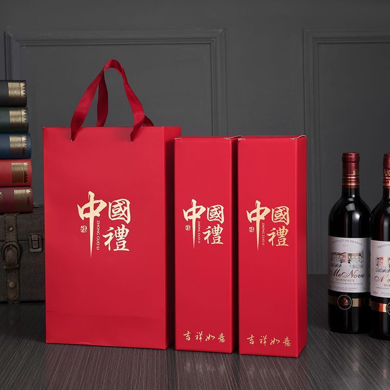 【包郵便】ワイン包装祝日ギフトボックスシングルセットワインプレゼント手提げ袋2本ワインケース
