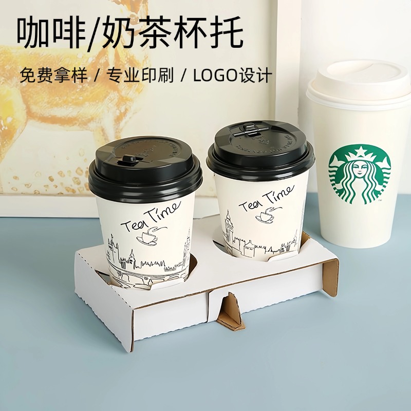 白い二杯のカップトークミルクティーコーヒーのテイクアウトボックスの使い捨てカップホルダーの固定ベースのシングルカップ四杯のホルダー