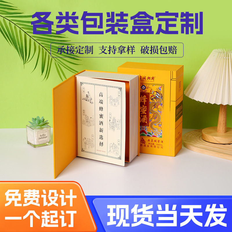 祝日の贈り物の高級な酒類のギフトボックスはお茶の健康食品の包装の本の型の箱の長方形のカラー印刷の紙の箱を注文して注文します。
