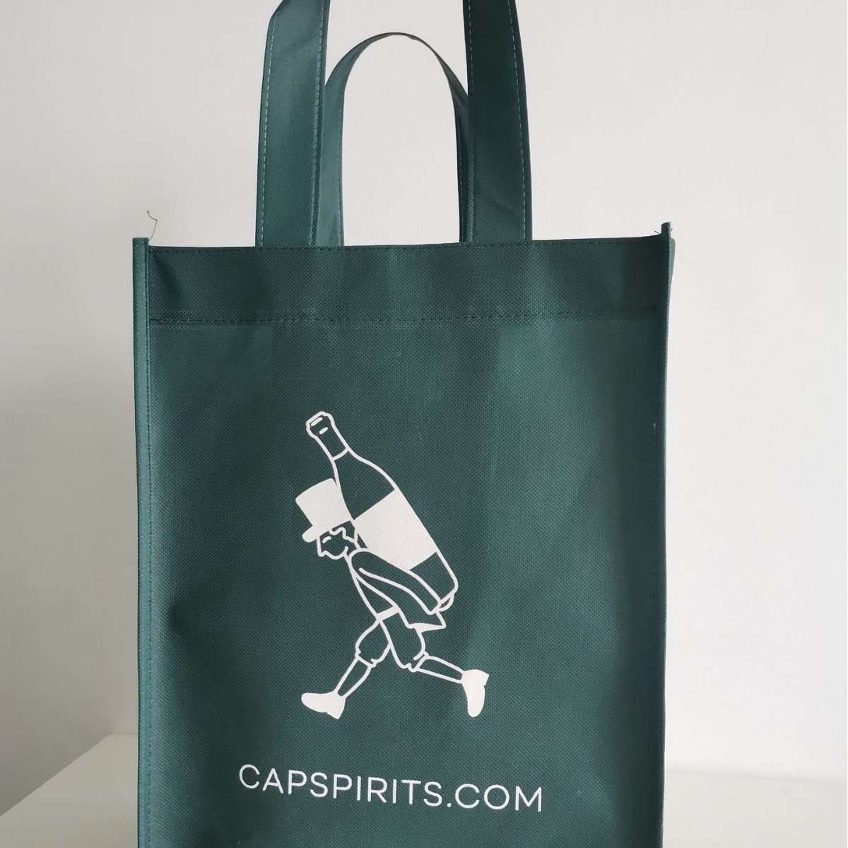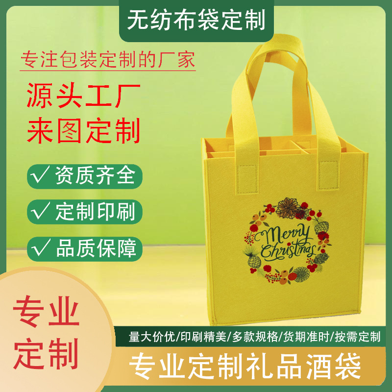 厚手の不織布袋を厚くして瓶に入れた酒の手提げ袋は、フェルト布の収納袋を再利用してロゴを印刷して注文することができる