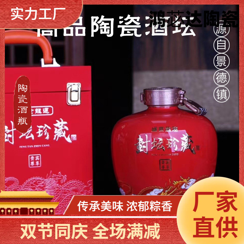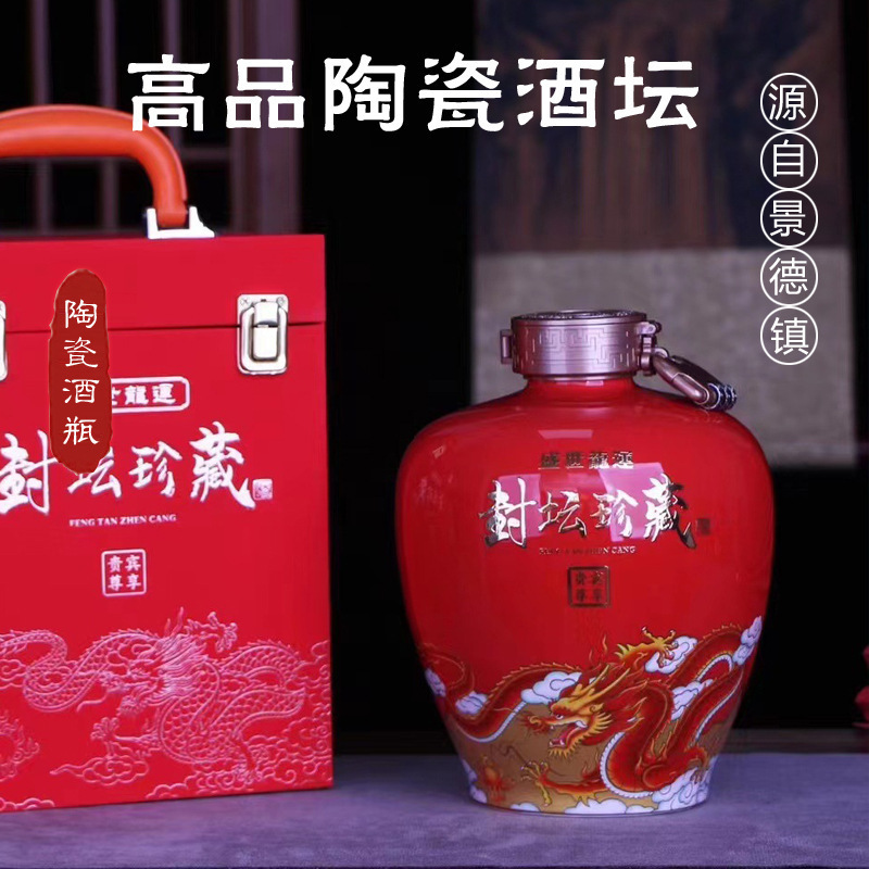 景徳鎮陶磁器酒壇5斤礼箱空酒瓶帝王黄龍壇高温陶磁器密封貯蔵タンク