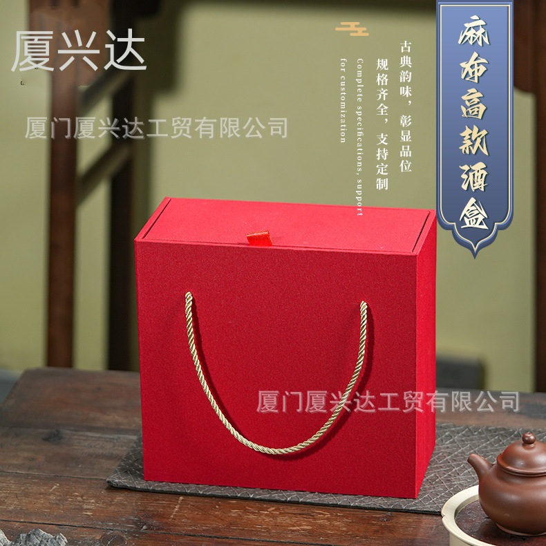 麻布の高さの2本の酒の箱の手は白酒を持って包装箱の酒の瓶の外の包装の贈り物の空の箱のお土産を収納します。