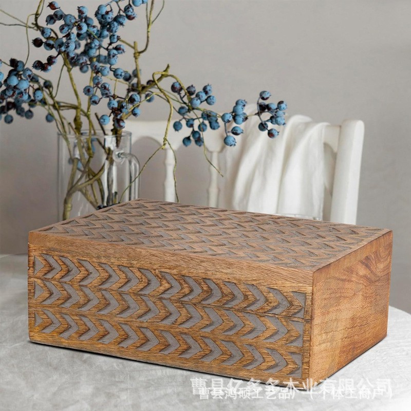 木のレトロな長方形の小さい木の箱の木製のアクセサリーの箱の手の箱は天地の蓋の木の箱のアクセサリーの箱をひっくり返します。