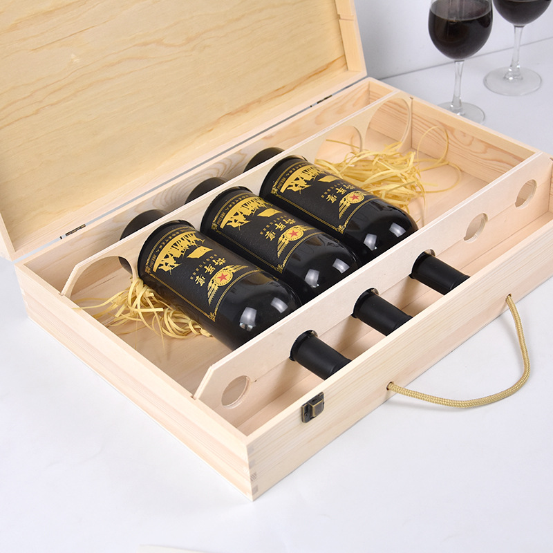 木製ワイン箱ワイン木箱引き出し蓋3本ワイン包装木箱木製ワイン礼箱