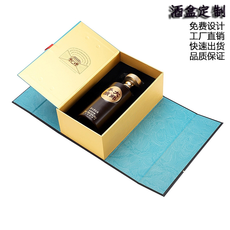 白酒包装箱カスタム本式見開きギフトボックスデザイン印刷カスタム密度板段ボール酒箱