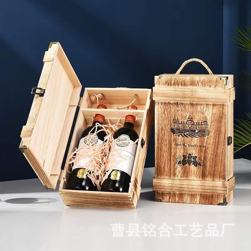 木製ワインケースワイン手提げギフトボックス洋酒乾燥赤引き出し包装ボックス木箱