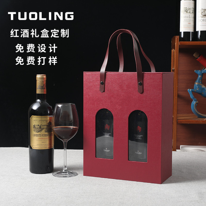 現物赤ワイン袋ギフトボックス2本セット新型pvc手提げ酒袋赤ワイン包装箱共通お土産手提げ袋