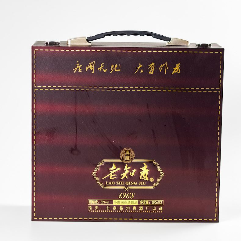 メーカーの健康酒の皮の箱の白酒の包装の贈り物の箱の卸売りの2つの白酒の手提げの包装の箱