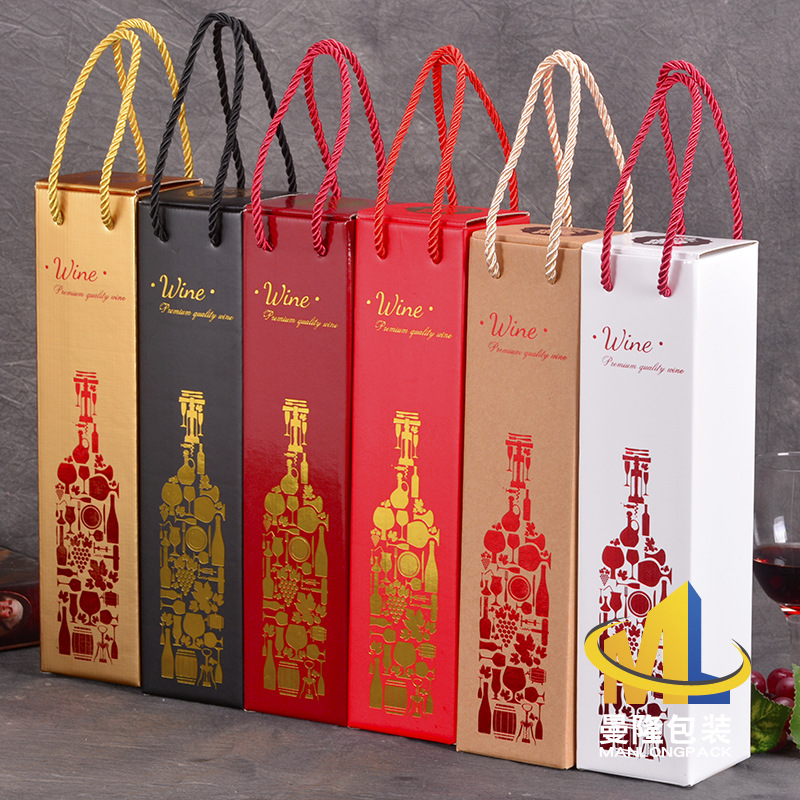 新しいワイン紙箱のシングルワイン包装箱には、バヨネットギフト箱付き手提げ袋クラフト紙酒水がついている