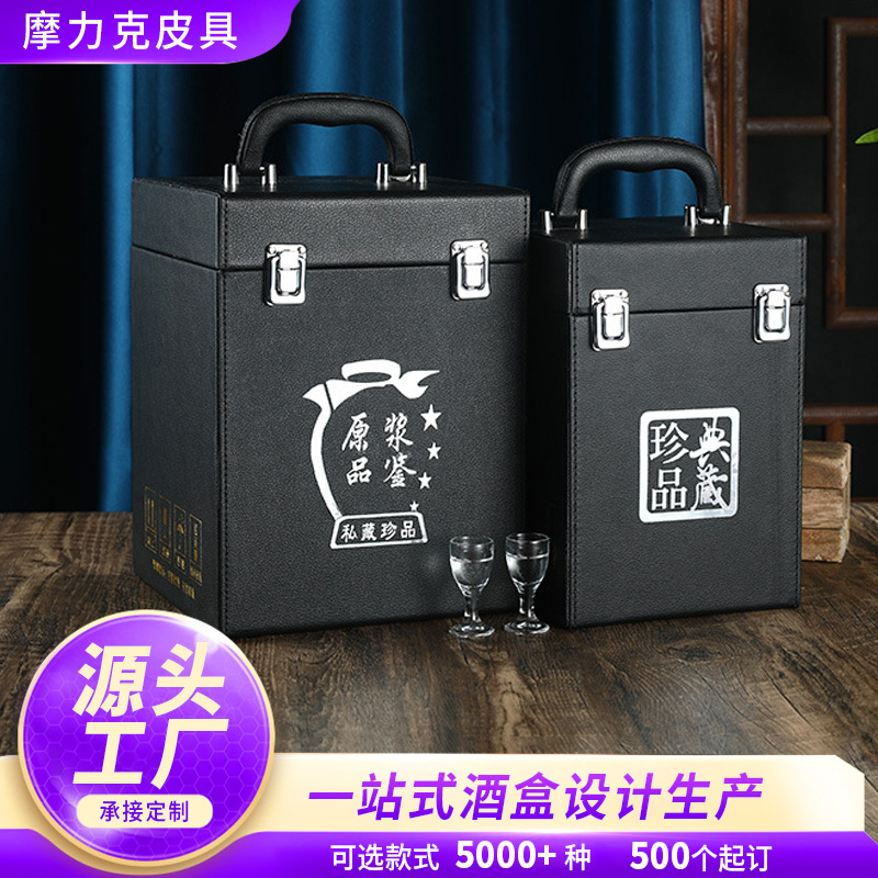 カスタマイズされた加工された酒箱、絶妙な革の包装ギフトボックス、印刷可能なロゴギフト、お祝いの酒箱、ポータブル