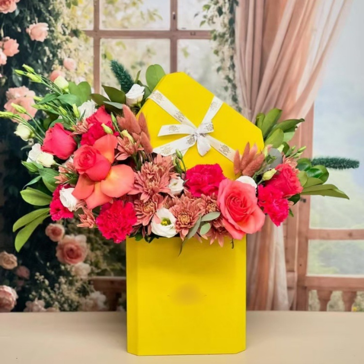 母の日ラブラブ愛ラウンドスリーブ三花ギフトボックスローズ花ボックスバレンタイン抱っこバケツギフトボックス