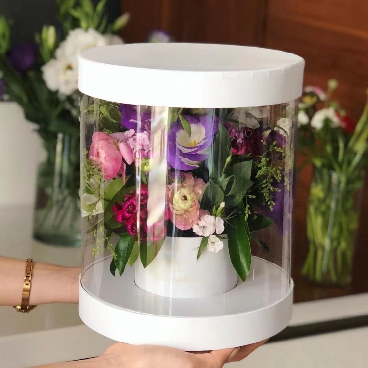PVC開窓丸箱折り畳み花礼箱全透明円形花抱っこ桶バレンタインデープレゼント箱