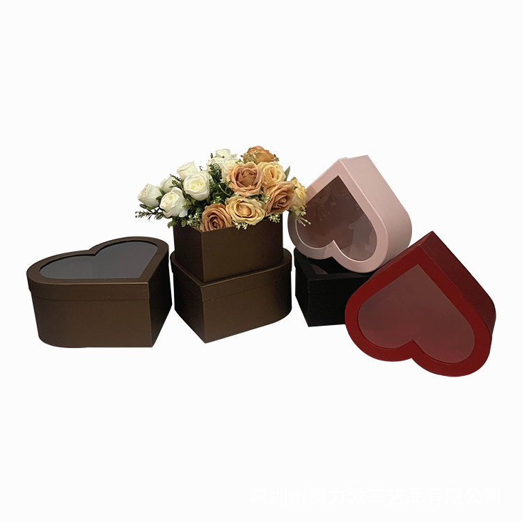 金葱紙シンプルな窓ハート型セット三生花ギフトボックスPVC透明ハート型開窓伴手ギフトボックス花箱