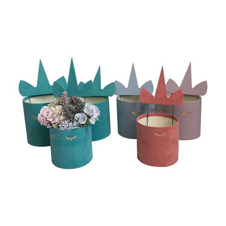 ユニコーン生花抱っこ桶三点セット円桶生花ギフトボックス誕生日記念ギフトボックスプレゼント箱