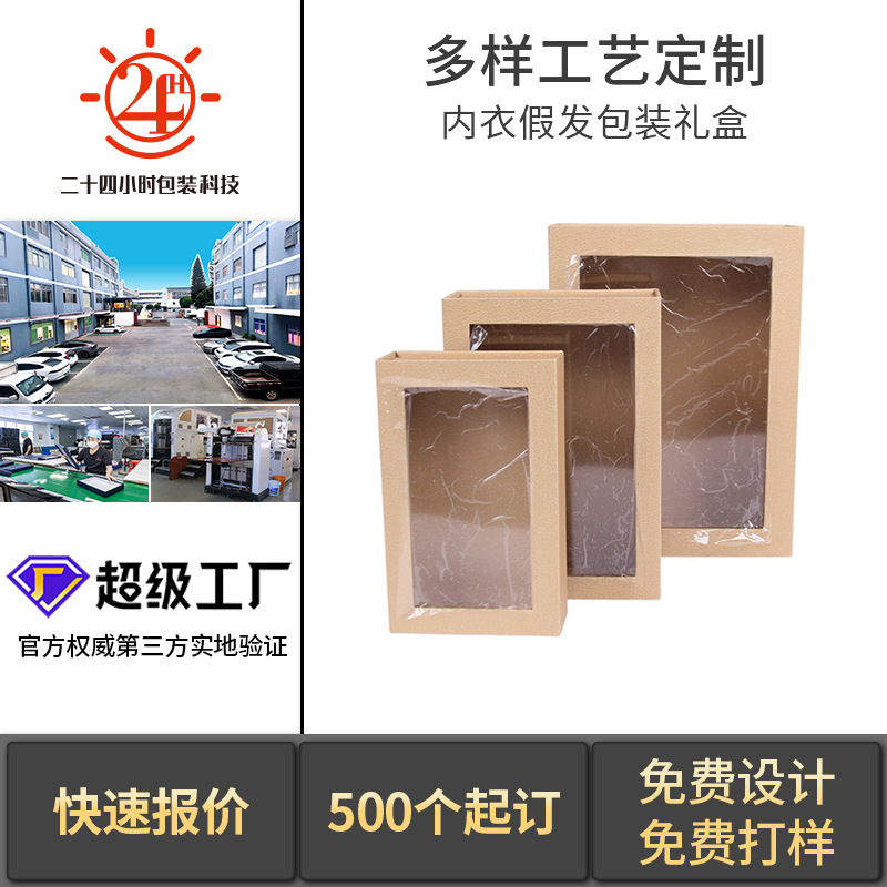 深セン工場は下着のかつらの包装箱をカスタマイズして、ギフトボックスのお土産の大きな透明な窓を開けてふたを開けます。