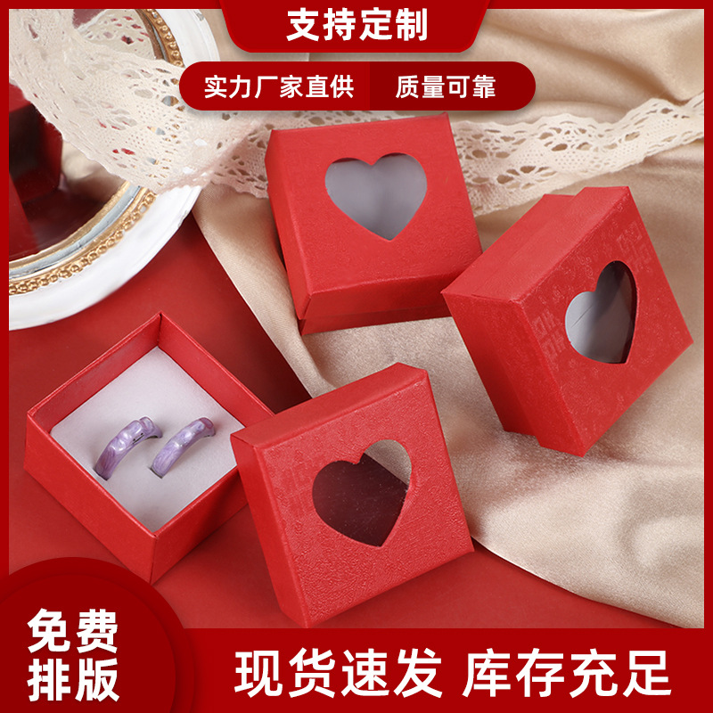 リングボックス現物ハート型開窓ギフトボックスピアスジュエリーボックスアクセサリー包装紙箱バレンタインデー赤いギフトボックス