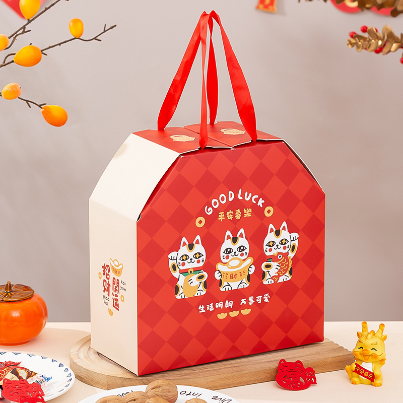 新年招き猫年物送礼箱間食ナッツ牛圧延糖雪花ショートニング包装大容量ギフトバッグ礼箱