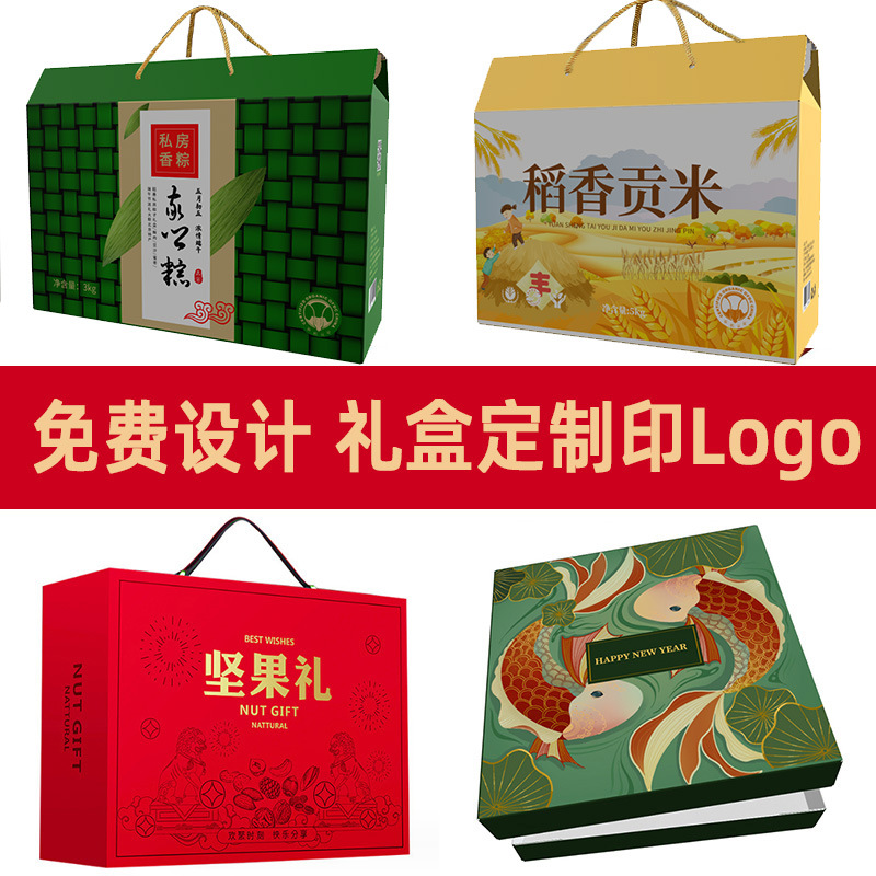ナットギフトボックス包装箱2024空彩箱紙スーツケース端午節果物特産印刷ロゴドライフルーツ