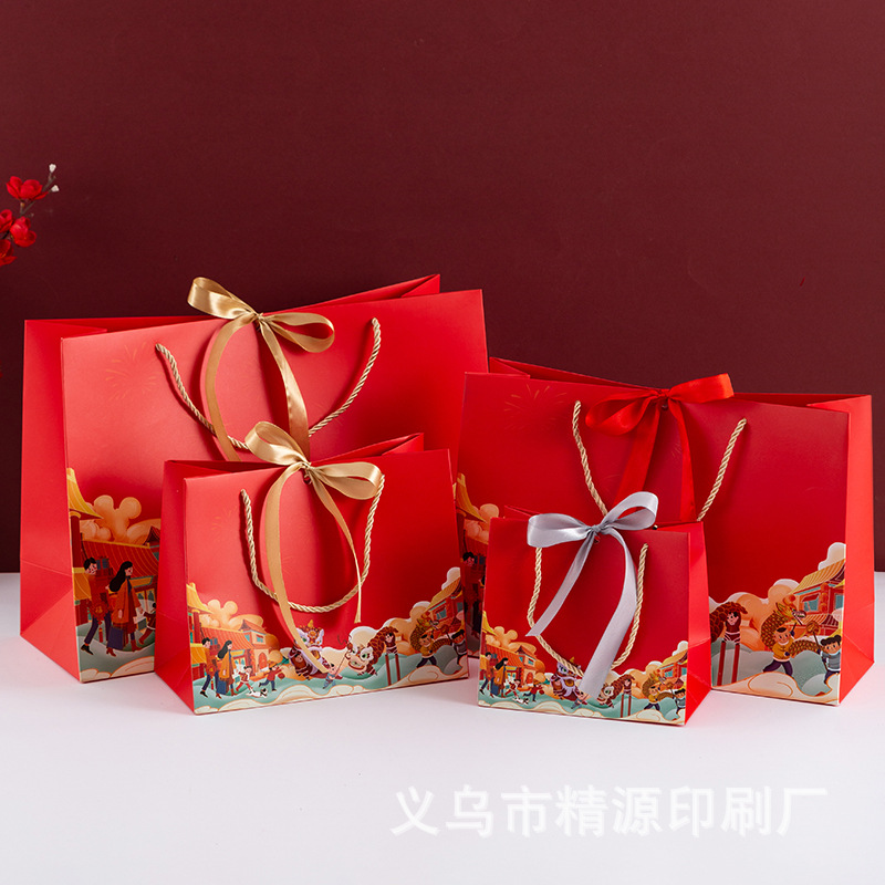 国潮中国式大赤色ギフトバッグ新年旧正月お返し手袋祭りプレゼント包装お土産紙袋