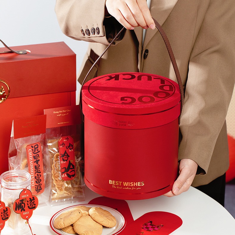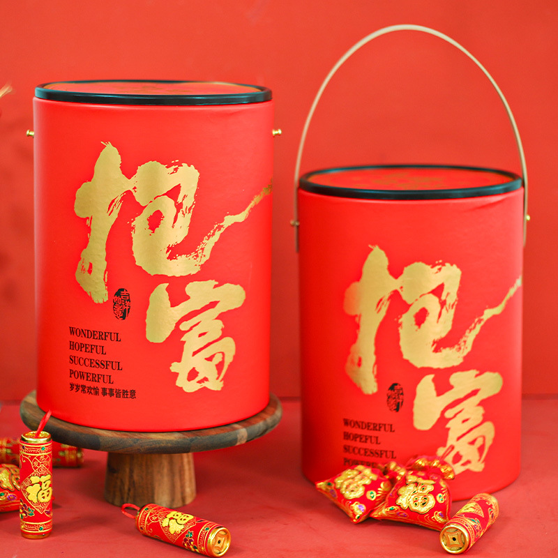 旧正月の新年の赤い抱富大号抱っこ桶のお土産箱のおやつのプレゼント桶の卸売り