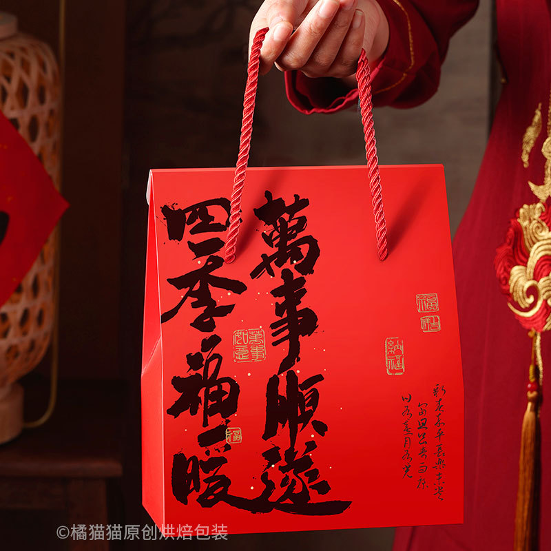 新しい中国風春節菓子ギフトバッグ、赤い焼き菓子、キャンディ、雪花餅、太妃糖包装、持ち運び可能なギフトボックス