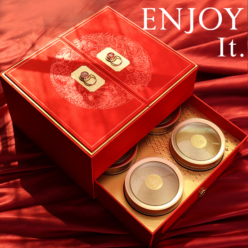 新しい赤い新年のダブルドアのギフトボックスは、結婚祝いの喜糖箱の年間サイズの二重包装箱です