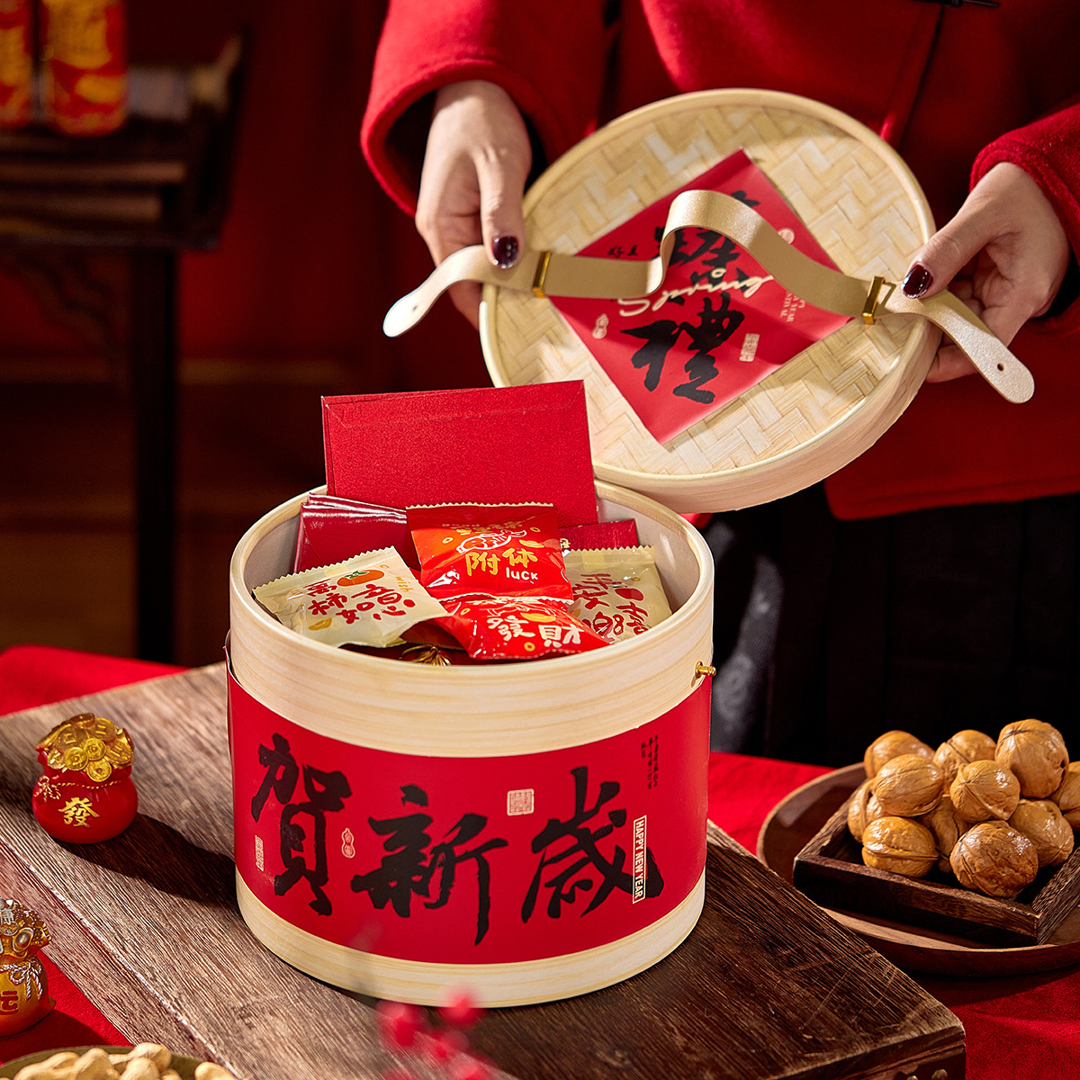 2025新年ナッツ竹かご礼箱包装ビスケット年物高級菓子土産蛇年通用空箱