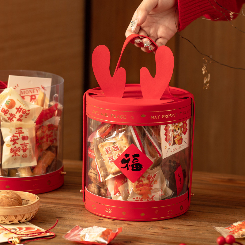 新年透明抱っこ桶手提げ包装ギフトボックス