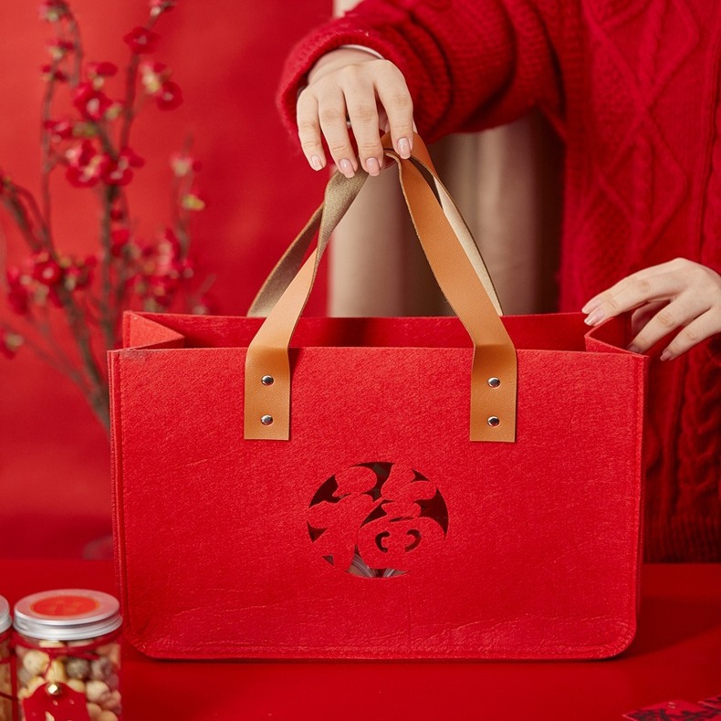 春祭りギフトボックス、新年ギフト包装袋、新年ギフトボックス、ユニバーサルビスケット、ナッツ、ペストリー、春祭りギフトフェルト