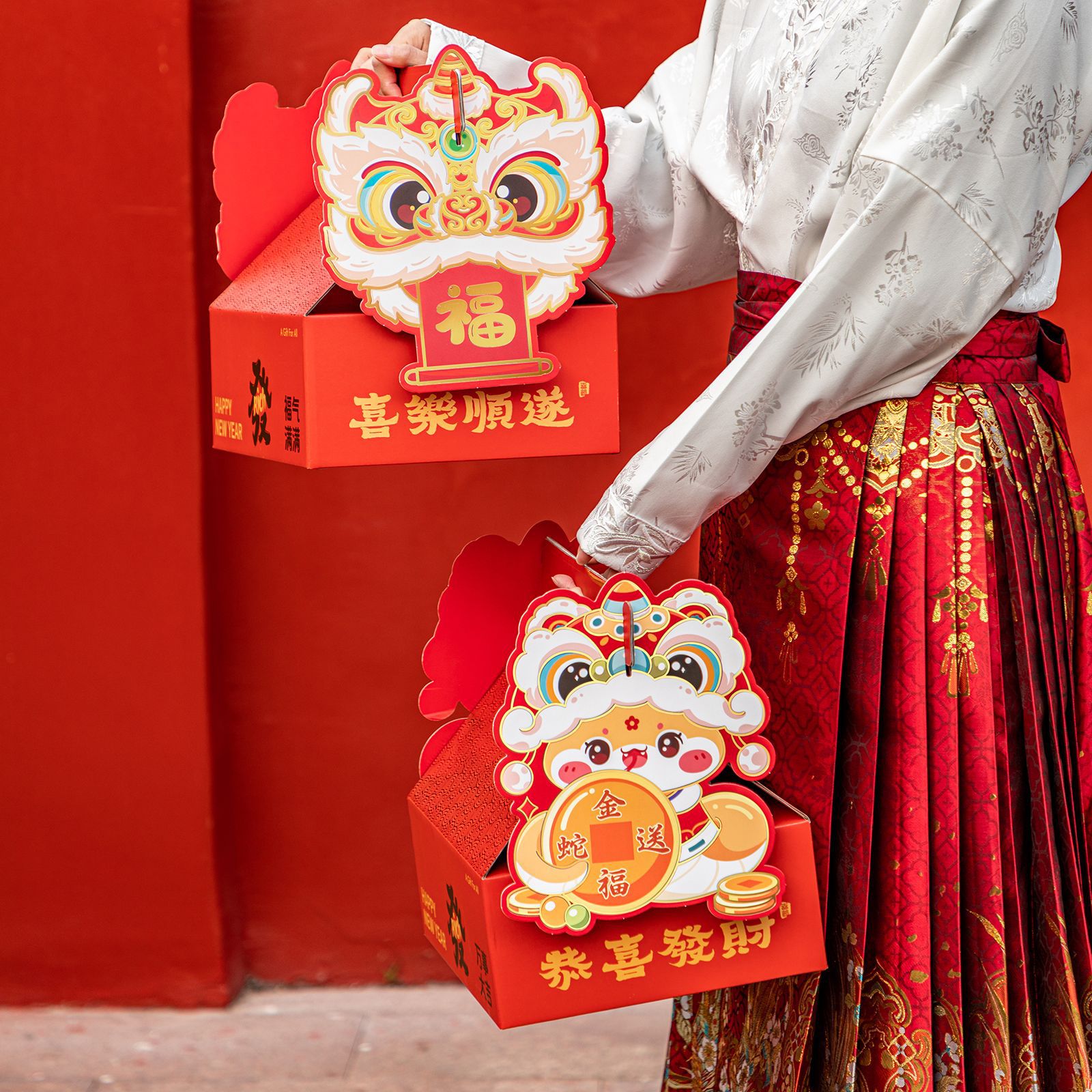 2025年新年ギフトボックス包装ハグバケツ蛇年春祭り新年福祉新年キャンディギフトお土産空箱