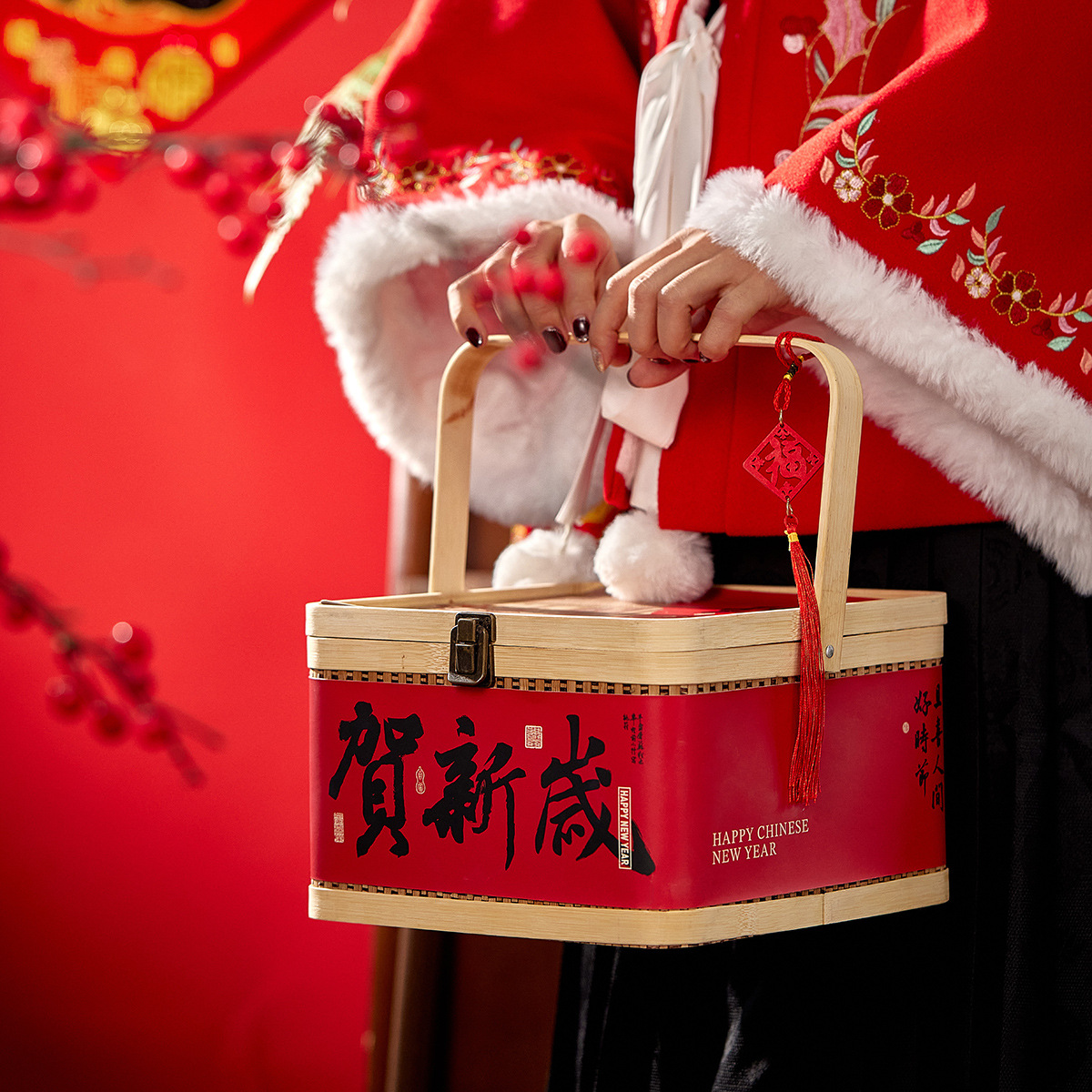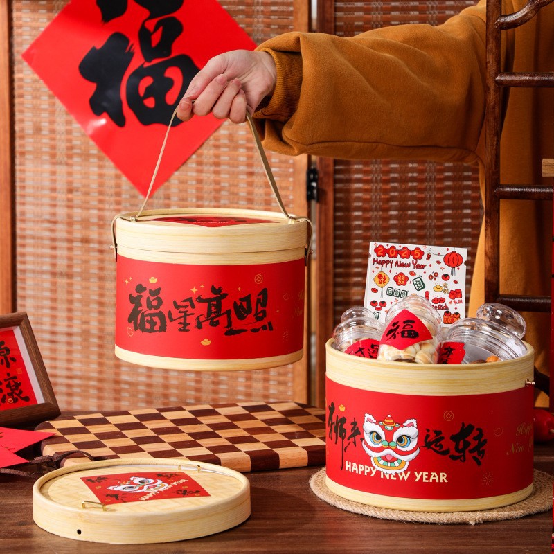 2025年新年手提げ青年品ギフトボックス包装手提げ竹編籠焙煎ビスケット牛圧延糖贈答包装