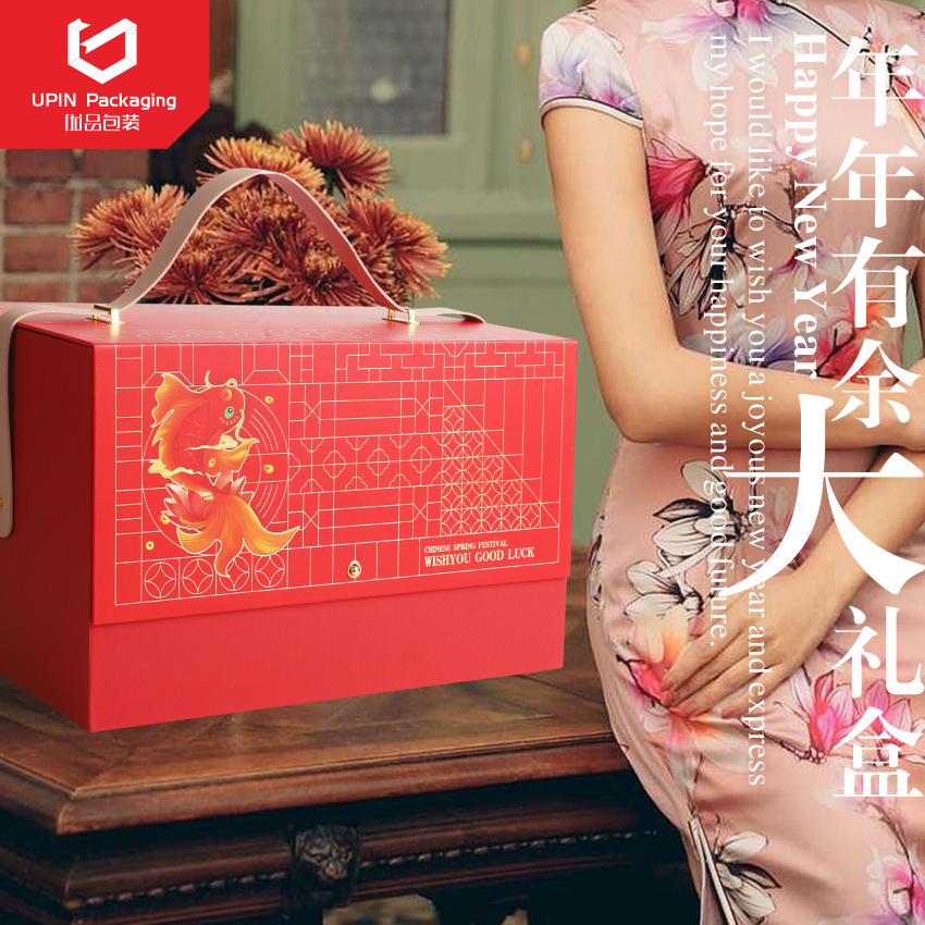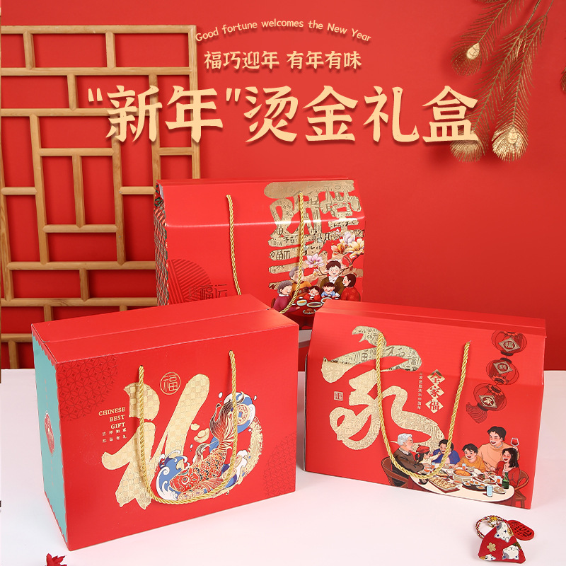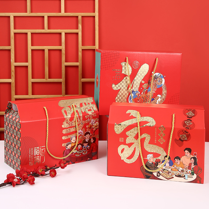 オーダーメイド新春プレゼント手提げボックスお土産おやつ大プレゼントナッツ包装逸品新年天地蓋ギフトボックス