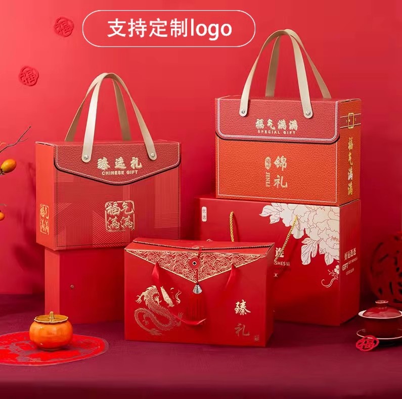 2024龍年中国式新年礼箱会社年次総会年用品大ギフトバッグ空箱ナッツ包装手提げギフトボックス