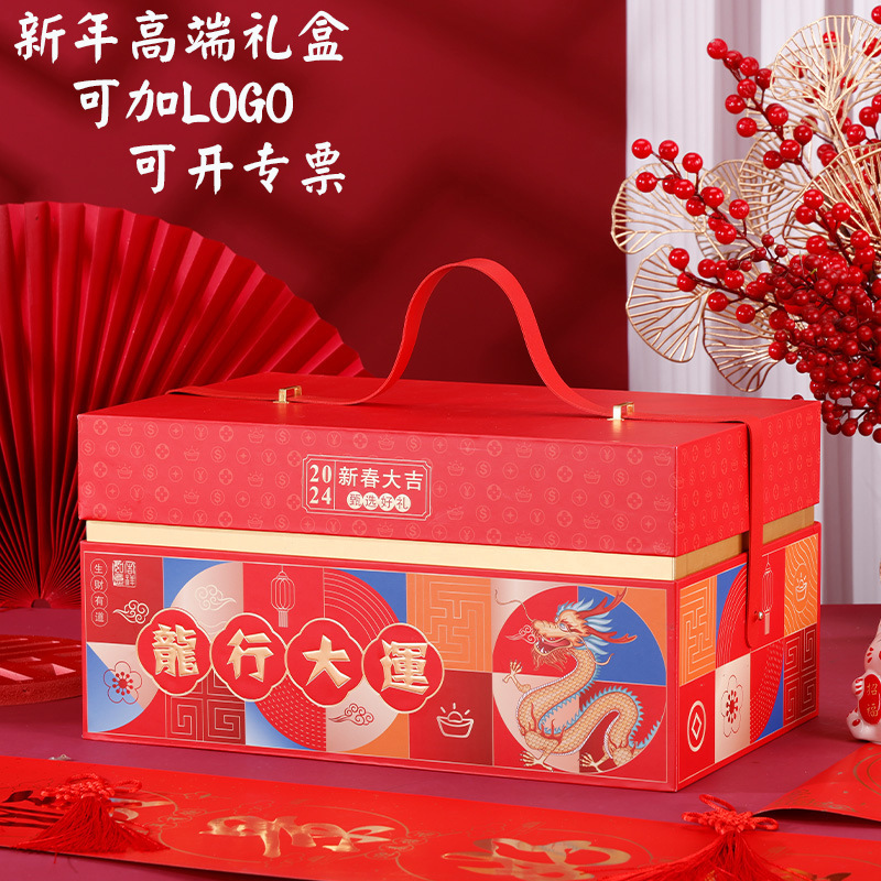 2024年新年通用国潮年品包装箱高級ギフトボックス空箱旧正月天地蓋特礼箱龍年