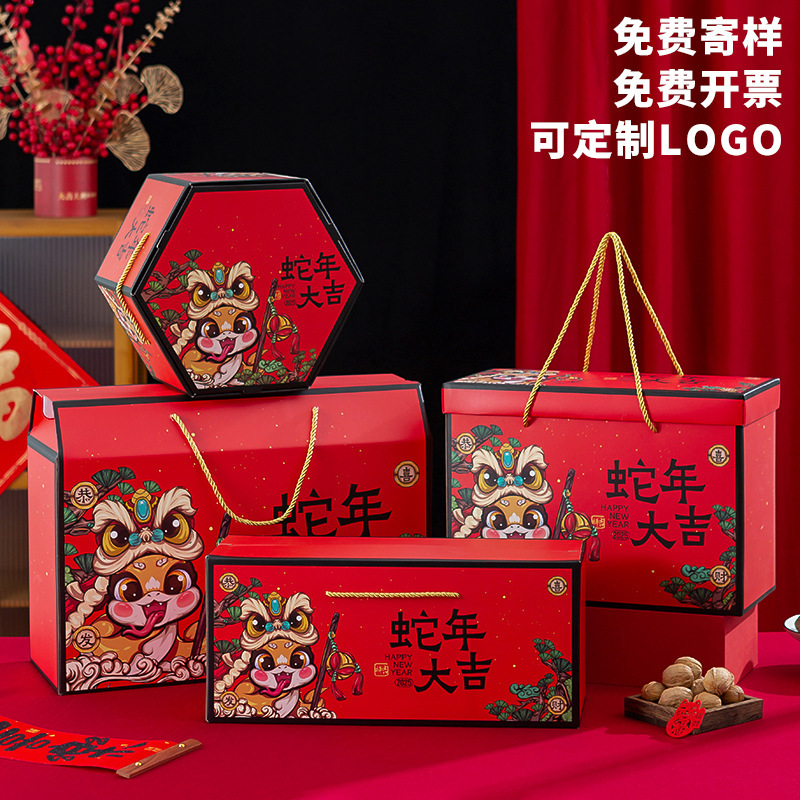 新商品の通用する年物のギフトボックスの包装箱の空き箱の旧正月の蛇年の手提げナッツの特産品の贈り物の箱は印刷することができます。