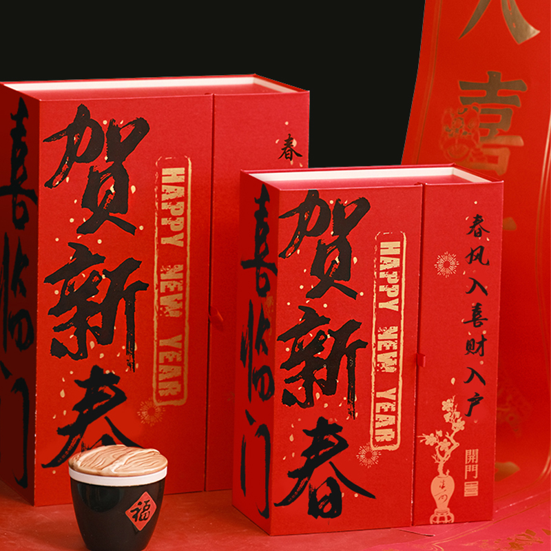 25年商品包装箱創意カレンダー掛け新年礼箱対聯紅包双開門空箱企業贈答定