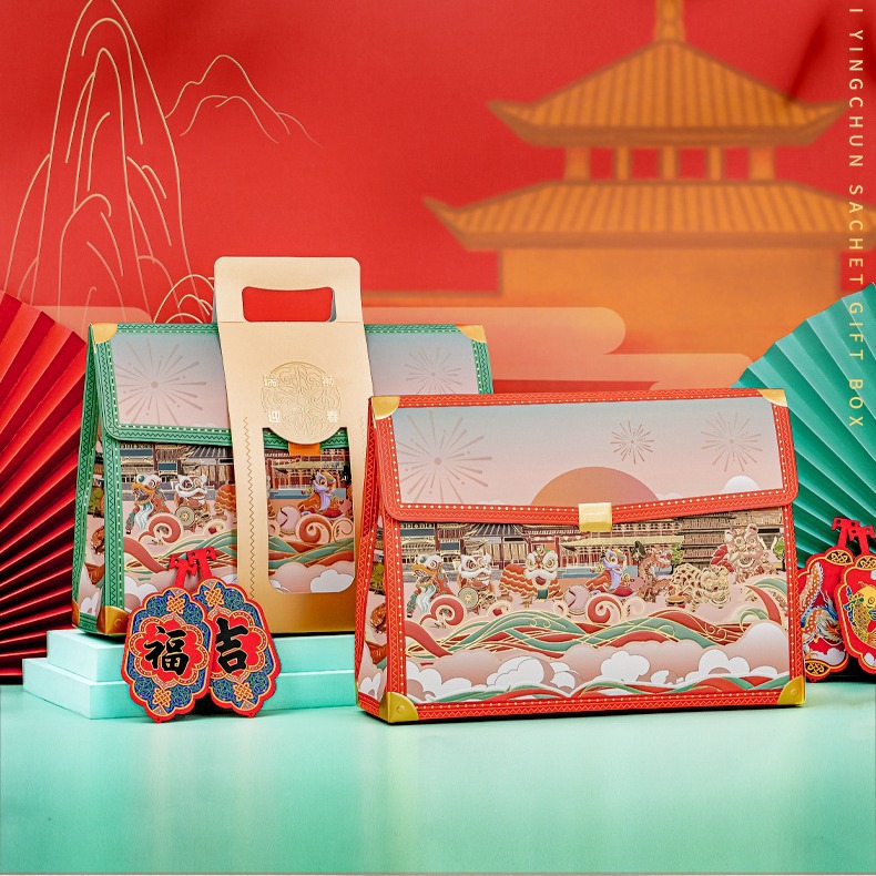 春祭りギフトボックス特殊な形状のポータブル包装空箱ギフトボックスカスタマイズされたクリエイティブギフト 2024 スナックバッグ新年