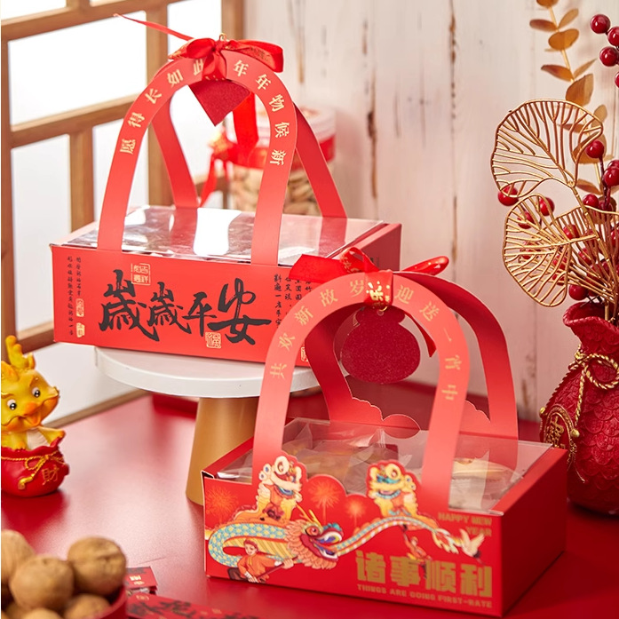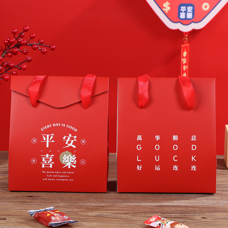 平安喜楽手提げ箱元旦赤いお祝い太妃糖果礼箱牛圧延糖雪花ショートニング包装袋