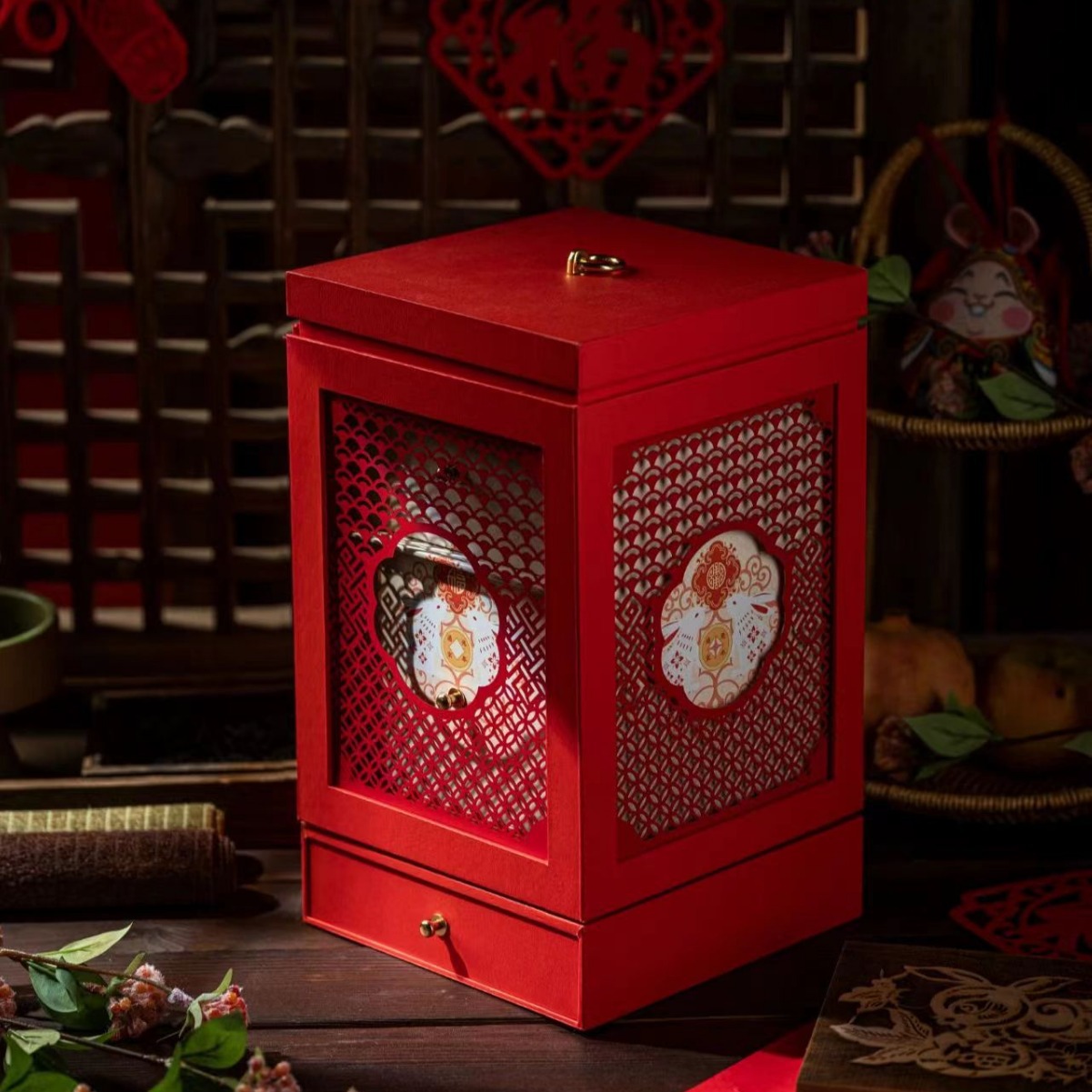 高度なカスタマイズされた 2024 新年装飾装飾品元旦春祭りウィンドウ年次総会シーンレイアウトセットギフトボックス空箱