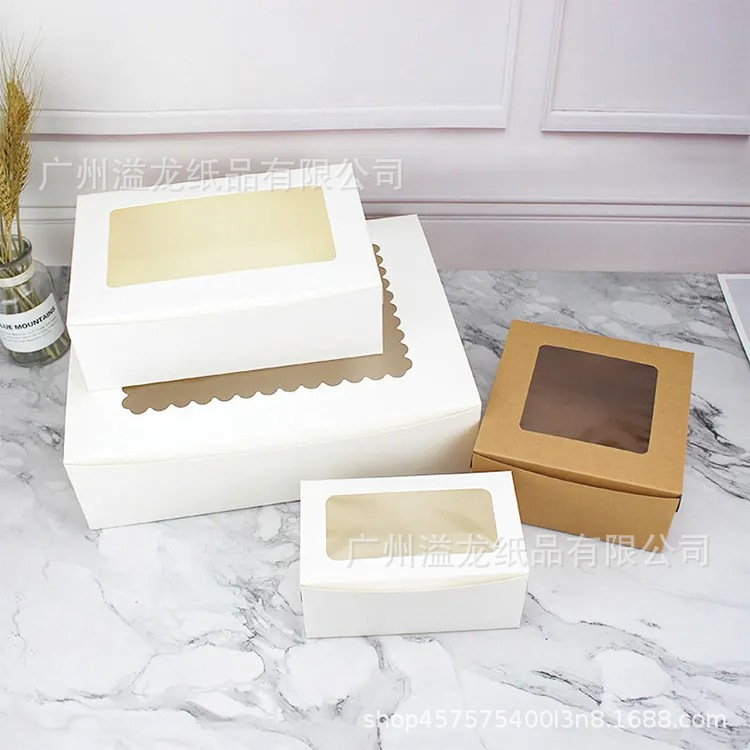 使い捨て誕生日パーティーパン屋ケーキ牛皮紙箱カスタム紙コップケーキ包装箱透明窓付き