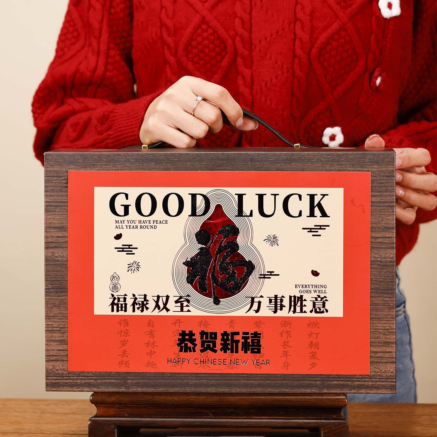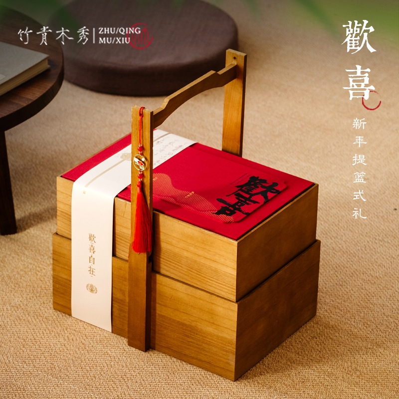 新年包装箱ワインタバコ旧正月プレゼント中国式実木バスケット果物ギフト箱空箱高級