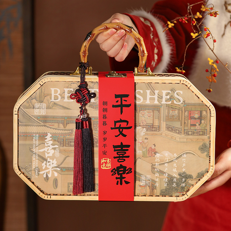 2025新型新年礼箱空箱高級古風竹かご蛇年春節旧正月焙煎プレゼント包装箱