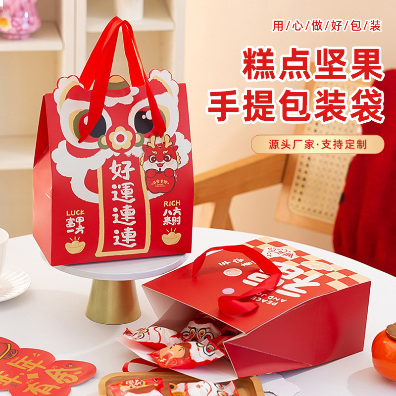 おせちギフトバッグ新年赤喜糖手提げ袋ナッツ乾燥果密封袋お祝いプレゼント包装袋現物