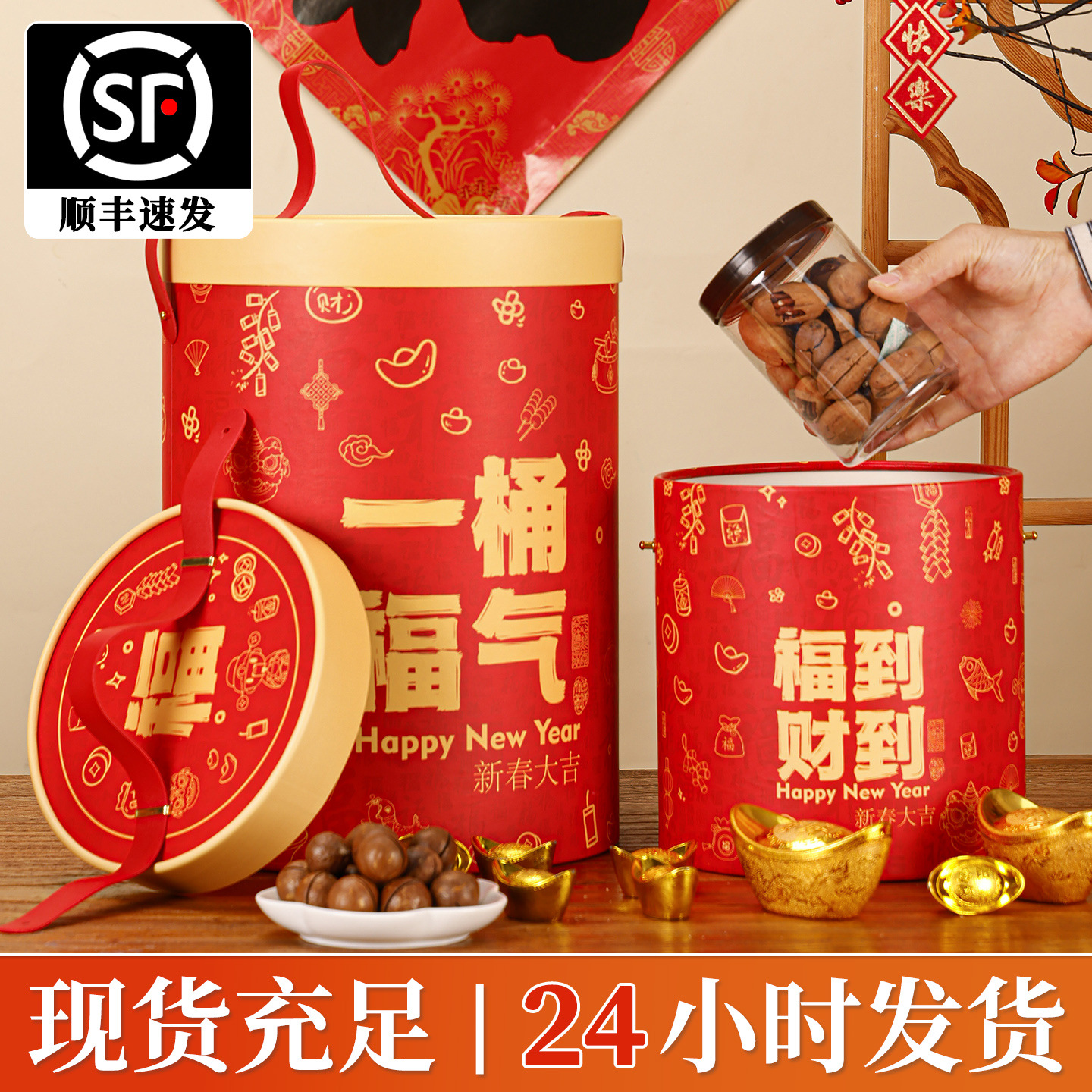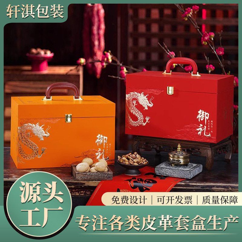 2024年新年礼箱包装手提げ旧正月年物ギフトボックス龍年特産ナッツ焙煎空箱現物