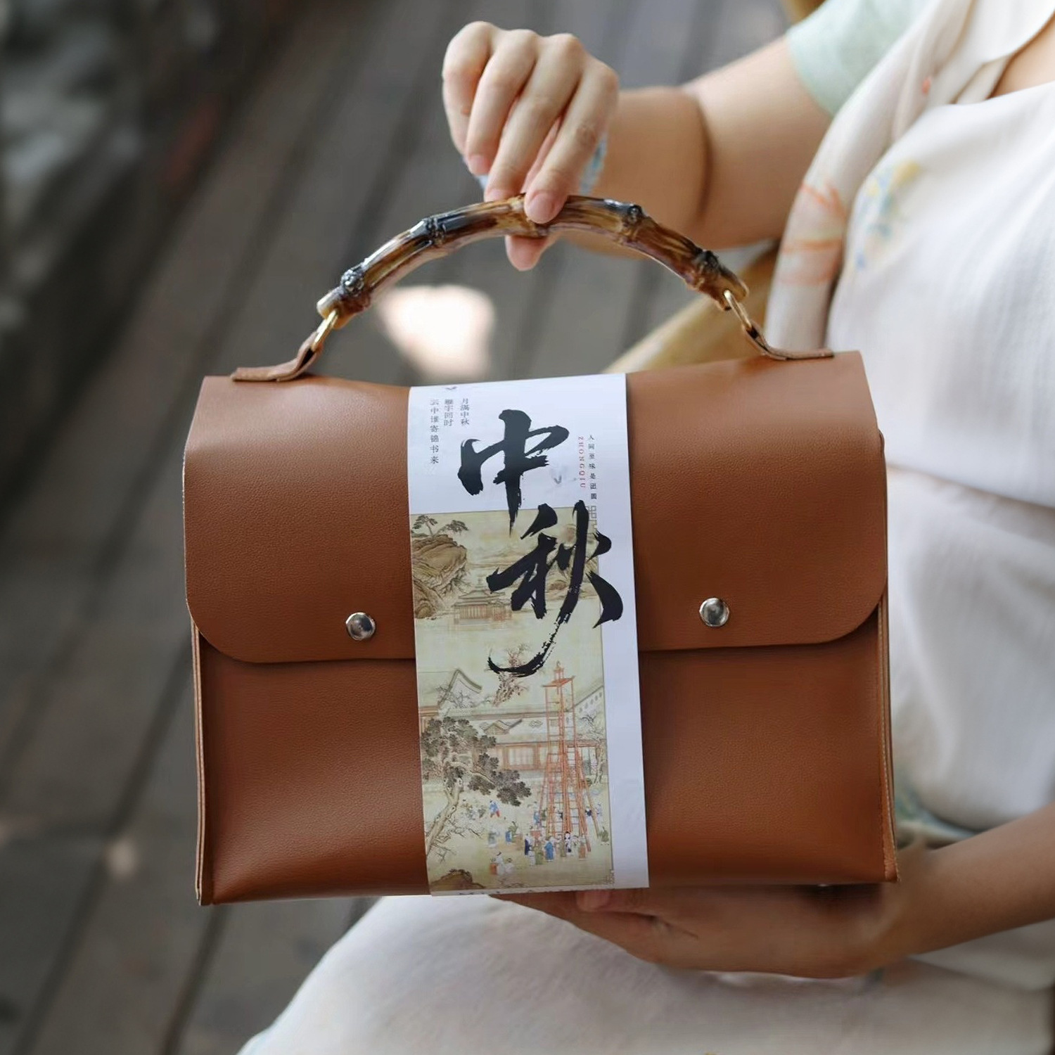 赤ワイン茶ギフトボックス片面レザー中秋節お土産ポータブルギフトボックスカスタムロゴ月餅ボックスレザーバッグ